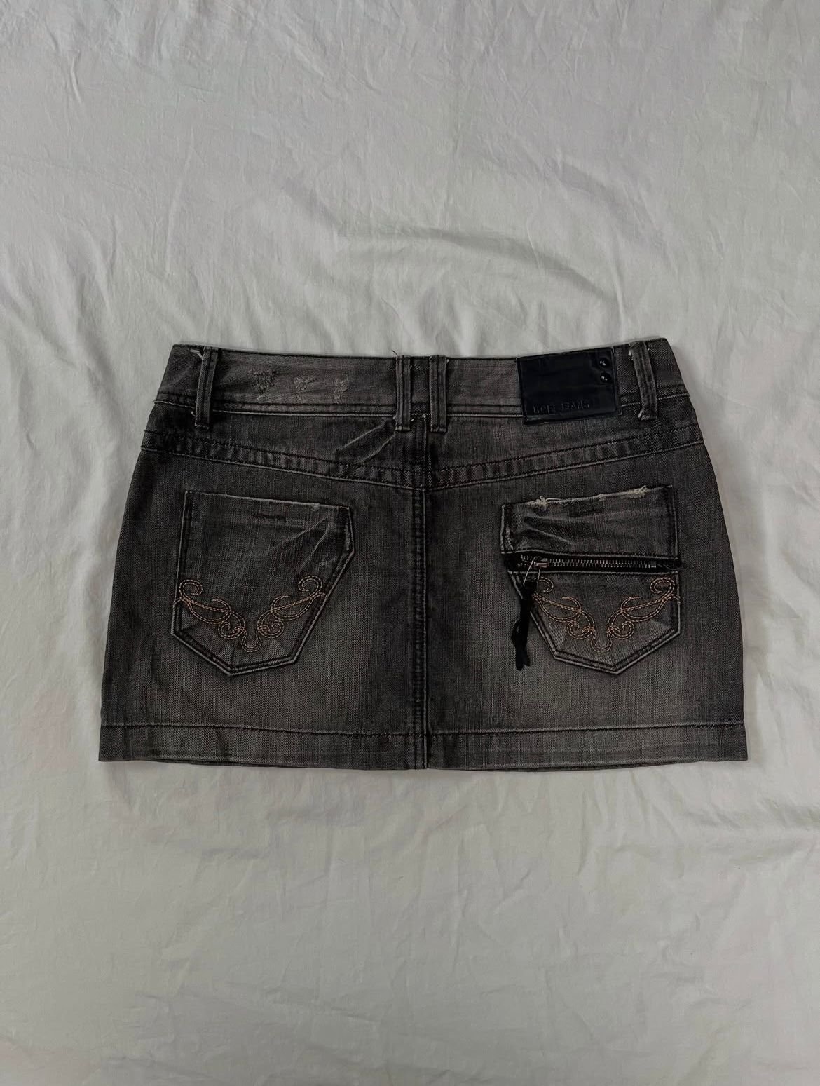 Urban Fade Y2K Faded Grey Denim Mini Skirt – Vintage Washed